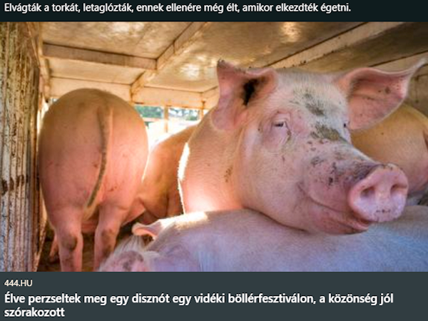 Egyébként persze a tett elítélendő: perzselni disznót a disznó meghalta után szokás, nem előtte. A konkrét eset egy kontár disznóvágás.